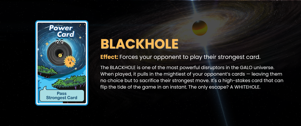 Each GALO card is a visual and intellectual treat — featuring hand-drawn characters, space elements, and unique power mechanics. Unlike traditional card games, GALO introduces new gameplay strategies where even the lowest-ranked card could turn the tide.